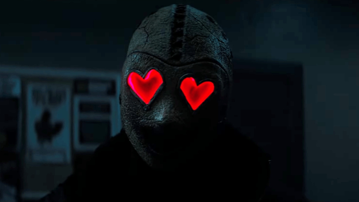 Heart Eyes, on the other hand works as a Valentines Day movie and a horror movie. The movies cold open starts in a very Scream-esque fashion as we follow a couple getting engaged. This is when the man gets shot in the head with an arrow and his fiancé starts running. The masked killer starts to chase her into a cellar and traps her in a wine press machine where we see her head explode on screen. This moment took me aback when I saw it in theatres. Outside of the Terrifier franchise, it seems of late horror movies like to stay away from showing graphic violence on screen to be more buyable to a general public audience. Heart Eyes isn’t concerned with this and has some gnarly kills on screen, which I appreciated.